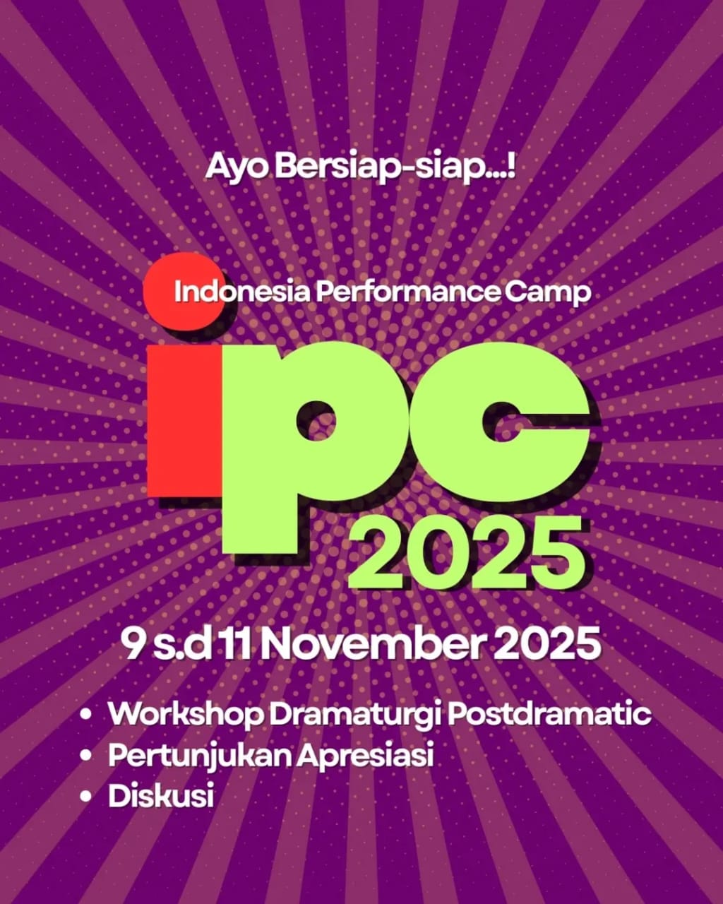 Tahun ini, IPC mengangkat tema “Praktik Dramaturgi Postdramatic dalam Pertunjukan Kontemporer”, sebuah kerangka kerja yang mengajak performer menelusuri tubuh sebagai arsip hidup—ruang pertemuan antara memori personal, tradisi, pengalaman sosial, dan gagasan artistik.